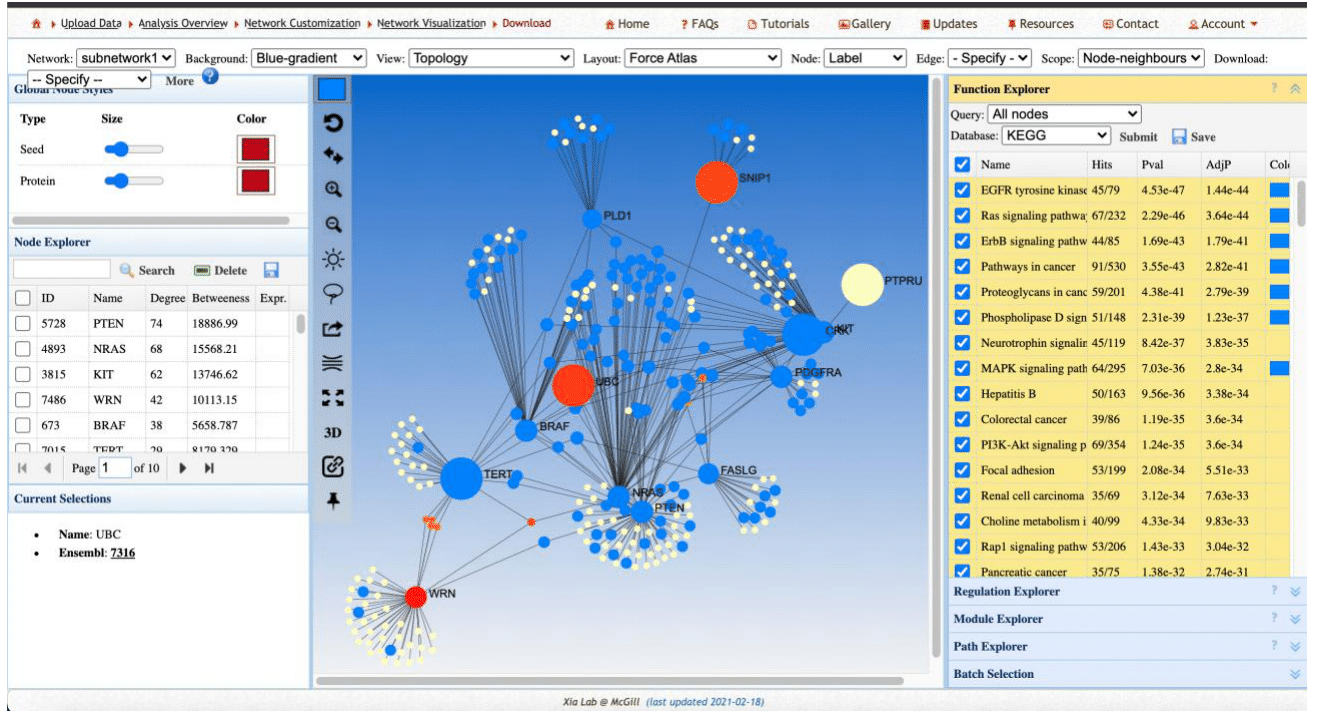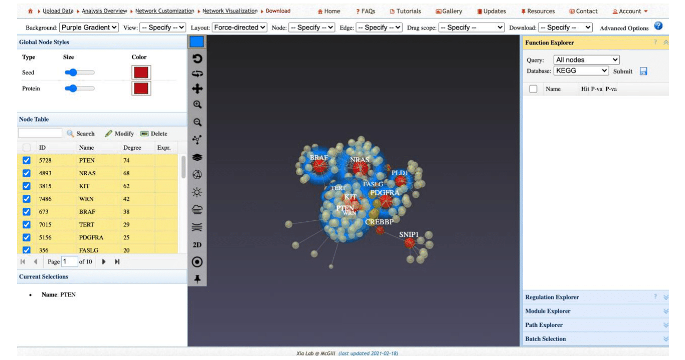 Network Analyst was used to integrate gene expression data with existing knowledge of protein-protein interactions to construct interaction networks. This platform allowed us to identify both direct and indirect interactions based on available gene expression data. STRING Database provided a comprehensive resource to explore known and predicted protein-protein interactions. The database includes associations derived from computational prediction, knowledge transfer between organisms, and interactions aggregated from other primary databases.16