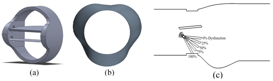 Heart disease is one of the leading causes of death. Treatment of certain types of heart disease involves surgically implanting mechanical heart valves. Bileaflet mechanical heart valves (BMHVs) are commonly used for valve replacement because their design can minimize flow disturbances.1 However, the rate of artificial valve dysfunction is 0.2-6% patient/year.2 Analysis of blood flow characteristics such as velocity, vortex formation and turbulent stresses are of importance to identify potential blood cell damage,3,4 especially due to complex and unsteady flow in the valve hinges.5,6 Woo et al.7 and Hasenkam8 showed that the high-velocity flow through the valve resulted in higher shear stress levels at the valve hinges and downstream of the valve and consequently, restricts the leaflets motion. Moreover, high velocity and shear stresses were observed in leakage jets from BMHV hinges which were associated with platelet activation and also thrombosis due to increased residence time in the hinges. These life-threatening complications may lead to dysfunction in one or both leaflets of BMHVs.9 Hence, analysis of cardiac sounds10,11 and flow dynamics12-15 are active research areas, which may lead to better identification of the complications and dysfunction issues and consequently, help to improve valve design.