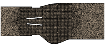 In this study, the computational domain was divided into four regions sequentially in the flow direction: upstream, heart valve, aortic root sinuses and downstream. The heart valve geometry (Figure 1A) investigated was chosen to be similar to previous studies.2,16-20 Figure 1B shows the asymmetric aortic root sinuses geometry (with inlet diameter of 0.023 m), which was generated using information extracted from a previous experimental study21 and was represented as an epitrochoid. Creating a realistic geometry of the aortic sinuses is important for appropriate internal flow field analysis.13,22 In the current study, the top (functional) leaflet was assumed to be fixed in the fully open position while the bottom leaflet was fixed at different levels of dysfunctionalities. Since the dynamics of the leaflet opening and closure were not simulated, the data presented in the results section will focus on the fully opening period. Figure 1C shows the side cross section of the BMHV at different levels of leaflet dysfunction of 0, 25, 50, 75 and 100%. The positive direction of the shear forces was chosen to be in the flow direction from inlet to outlet. In this study, a commercial CFD software (STAR-CCM+, CD-adapco, Siemens, Germany) was utilized to perform the unsteady simulation for one complete cardiac cycle (simulation time, T = 0.866s) with a time step = 0.5 ms and 25 iterations per time step. The in vitro CFD analyses were performed for a pulsatile flow through a three-dimensional BMHV with fixed leaflets. The inlet velocity corresponding to cardiac output of 5 L/min and heart rate of 70 bpm with systolic phase duration of 0.3 s as illustrated in.19 The peak inflow velocity was ~1.2 m/s and the density of blood was set to ρ = 1080 kg/m3. The blood also was considered to be both Newtonian with the viscosity of 0.0035 kg/(m.s) and non-Newtonian based on generalized Carreau-Yasuda model.14 This lead to an inlet peak Reynolds number of 8516 and a is Womersley number, ; is the frequency of pulsatile flow equals to 17.21. Moreover, high quality polyhedral mesh was generated in the flow domain, especially in the heart valve and aortic sinuses regions, close to the wall and the leaflet surfaces, Figure 2in order to maintain y+ ≪ 1 (y+ = 0.46 at the peak flow).