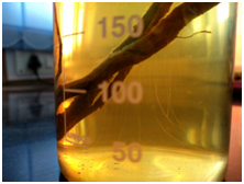 The root bark necrosis infected roots of pomegranate plant were collected from the pomegranate orchard of MPKV, Rahuri. The infected root samples were washed thoroughly under tap water to remove dirt particles and air dried. These root portions were given a cut by using a sterilized scalpel and immersed it in sterilized distilled water to observe the bacterial string coming out from the vascular bundles of the infected portion of the root.