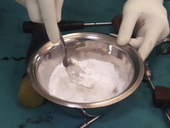 HydroSet is a self-setting calcium phosphate bone substitute.24 It is also used in the same instances as DirectInject and can be used in the augmentation and restoration of the contours of the craniofacial bones.24 HydroSet will harden when exposed to water, blood, and cerebrospinal fluid.24 The hardened HA will be replaced by natural bone growth through resorption.24 The hardening process is non-exothermic and removes any issues of heat-related injuries during the setting process.24 It can be applied via spatula, hand, or injected with a syringe to tailor itself to the surgeon’s needs.24 HydroSet received FDA approval in October of 2016(Figure 5).26