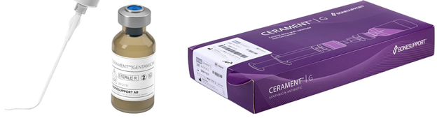 Cerament G, manufactured by Bonesupport, is an injectable bone void filler, that contains an antibiotic to protect against gentamicin-sensitive organisms.27 Cerament G has properties that permit surgeons to better manage bone defects in a single-stage procedure (Figure 6).27 Single-stage application also allows limited healthcare resources, namely time, to be used to meet other needs and increases the cost effectiveness of clinics.27 Within a year Cerament G will fully restructure into the host’s bone material, this fast-paced bone remodeling has the benefit of reducing the risks of fracture and infection.27 Cerament G was approved for clinical use by the FDA in May of 2022.28
