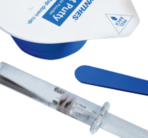 OtoMimix is manufactured by Olympus.31 Like the Fast Set Putty, it must be manually mixed before application.31 It is used in middle ear implants.28 OtoMimix must be mixed by the operating surgeon before use; it will then allow a surgeon 2-4 minutes to work with it once properly mixed (Figure 9, 10).31 OtoMimix was approved by the FDA for clinical use in November of 2004 (Table 2).32