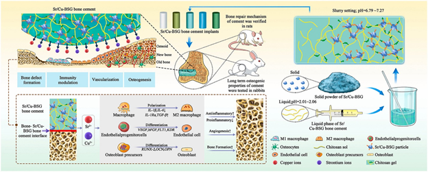 This image shows a schematic of bone defect repair using Sr/Cu-BSG.