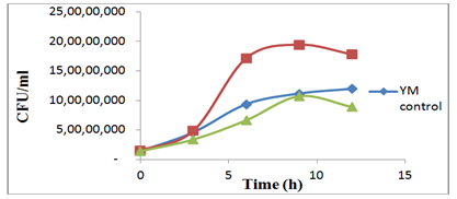 The YM media were prepared the same throughout the study, approximately 2.1g of YM powder was weighed and added to 250ml flask, 100 ml of deionized water (di-water) was added to dissolve the powder, and the pH was 6.3. The mixture was autoclaved at 121°C for 30 minutes, and left in the laminar hood to cool to room temperature.