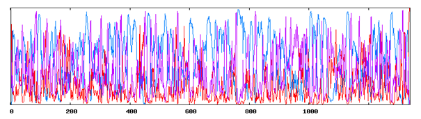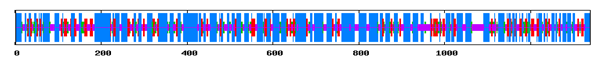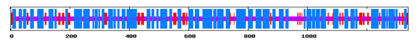 Using SOPMA and GORIV (tool for secondary structure prediction) regions of different secondary structure have been located in the entire protein sequence and it was found that the secondary structure is composed of alpha helix and beta sheets. Table 1 represents the comparative analysis of GORIV and SOPMA from which it is clear that alpha helix is predominantly present when the structure is predicted by both SOPMA and GORIV, followed by extended strand. After secondary structural annotation analysis, it has been found that highest percentage is of alpha helix (51.76%) and then random coil (26.06%), extended strand has been found to be (14.26%), beta turn (7.92%). And other secondary structure like 310 helix, pi helix, Beta Bridge, bend region, ambiguous states and other states are totally absent. Higher percentage of helix indicates its helical chemistry (Figure 1 & 2) (Table 1).