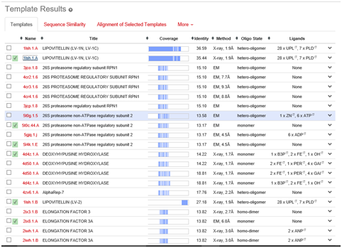 The modeling of the 3-dimensional structure of the protein was done using by homology modeling programs3 Swiss model. Template was searched using Swiss model template library. A total 50 templates were found and it shows in Figure 3. The templates with highest quality have been selected for model building. Models are built based on the target template alignment model quality. Model quality was estimating assessing the QMEAN score.4 QMEAN is a composite scoring function for both the estimation of the global quality of the entire model as well as for the local per-residue analysis of different regions within a model.18 In the Swiss Model Workspace the QMEAN4 score is used to evaluate the generated models.