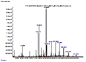 Dry rhizomes of K. galanga from natural and tissue cultured plants (10.0 g each) were powdered and separately extracted with 250.0 ml of Hexane using the soxhlet apparatus for 3 hours. Then the Hexane extract was concentrated to 1.0-2.0 ml by evaporating in rotary evaporator (BUCHI-R-124). Concentrated extracts were subjected to GC-MS analysis. Chromatograms were observed and the chemical constituents present in the sample were identified.