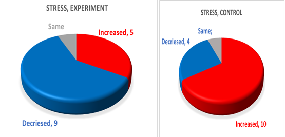 As we see for all the people Organs balance improved in experimental group and decreased in control group. This index correlates with SNS/PNS balance, and its increase signifies improvement of the ANS balance.