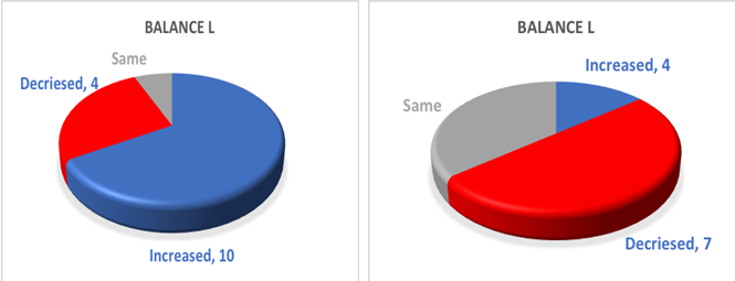 Figure 8 Balance L Index for 15 people from experimental and control groups initially and a month after.