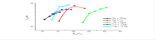 The contribution of non-compound processes like transfer and incomplete fusion (ICF) reactions to the cross-sections of different evaporation residues were deduced from the experimental value using the statistical modelcodePACE2. And the results showed that non-compound processes become a significant fraction of the total reaction cross-section in 16O+66Zn systems, while 37Cl+45 Sc gives mainly compound nucleus products. Further, the result indicated that the contributions of non-compound processes are more in mass-asymmetric system. Abhishek et al.,10 studied the effect of entrance channel properties in the incomplete fusion of 12C+ 159Tb at energies≈4- 7MeV/ A. The results indicated that incomplete fusion contribution found to be sensitive to the projectile type, energy, and entrance channel mass-asymmetry. Pushpendra et al.,11 studied the dynamics of incomplete fusion by the spin distribution of 16O +169Tm system at ≈5.6 MeV/nucleon. The result showed that the measured normalized production yields of fusion-evaporation xn/αxn-channels in good agreement with the predictions of theoretical model code PACE4. Further, the study indicated that residues from the complete fusion process are strongly fed over a broad spin range, while residues from incomplete fusion process are found to be less fed and/or the populations of lower spin states are strongly hindered.