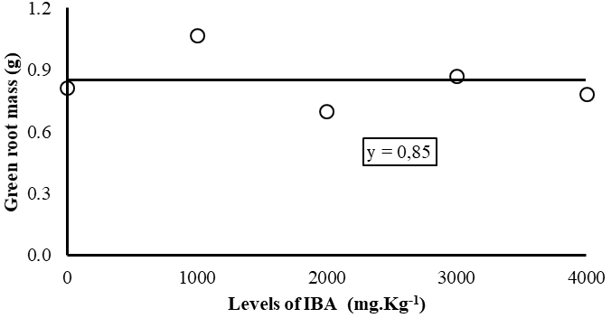 There are several factors that act in the formation of roots, mentioning the period of rooting, concentration of the hormone, type of cutting as well as the genetic potential of the cultivar. They also mention that the release of phenolic compounds, in the place where the cuttings were cut, can act with the oxidation of the tissues and their darkening, making the formation of roots difficult. In this case, the Paluma guava did not show rejection to rooting or even showed signs of phenolic oxidation, however, the use of IBA did not act in a way that improved rooting, a fact that leads us to indicate that in this variety, the use of rooting inducers can be dismissed.13