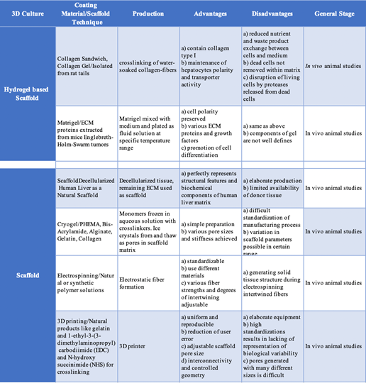 Table 5 Tissue Engineered Liver Products: Hydrogel-based versus non-Hydrogel scaffolds16