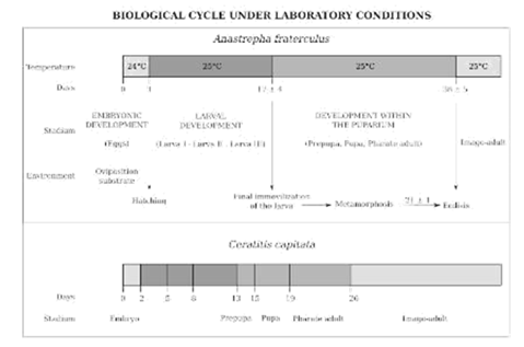 Figure 2 Biological cycle of Anastrepha fraterculus (Basso, 2003) and Ceratitis capitata under laboratory conditions.35.