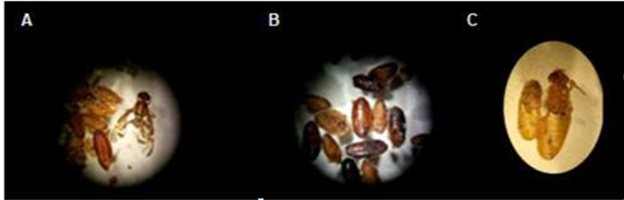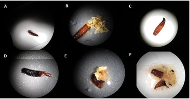 The brittle cuticle of many insects accounts for the alteration of the chitinization process during pupariation what makes impossible to properly identify the species (Figures 3 & 4).