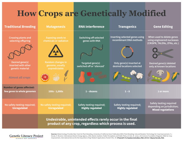 As for the agricultural side of the biotech industry, this one has more people against it and its products, GMOs, or genetically modified organisms. GMOs are organisms whose genetic material has been modified through genetic engineering, which sometimes creates combinations that do not occur in nature or by crossbreeding methods (Figure 4). Right now, there is a wide variety of these products or organisms on the market, for example, corn, soy, canola, potatoes, summer squash, apples, papayas, and salmon. All GMO products are considerate save to consume and, in some cases, help crops to disappear, as in the case of the Hawaiian papaya. All these examples mentioned before look for the population's overall well-being, but microorganisms are not always used for good purposes.21–26