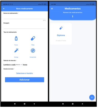 Drug data is important to maintain regular treatment. For pharmacists, the use of health apps is beneficial and helps in a healthier lifestyle, being a fundamental part to promote it.19 For nursing, safe patient care is made up of several types of care, including monitoring the medication in correct dosage and times according to the medical prescription; however, this is a difficulty observed when access to the medication is up to the patient himself, as forgetfulness can occur. So that this does not happen, the implementation of a technology with a focus on safety and continuity of drug therapy becomes an important tool to help patients and their families.20,21