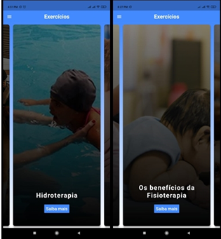 In the exercise tab, the user can find tips on various aspects concerning the stimulation and motor development of children, such as tips on vicious posture, benefits of physiotherapy and examples of physical stimulation to be done in the comfort of their own home. You can select any of the exercise options so that the details are displayed, and you can also share the content. Figure 9 exemplifies what was said earlier. ZikaV has a neurological affinity and severely affects the mobility, tone and posture of children with this diagnosis. Early stimulation and physical therapy monitoring is able to minimize changes in motor functions, in order to provide better neuropsychomotor development and autonomy for the child.27