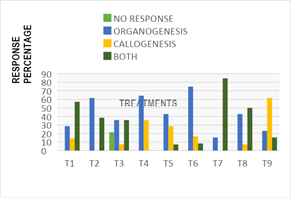 Figure 1 Response of explants to organogenesis and callogenesis in different treatments, at 16 weeks.