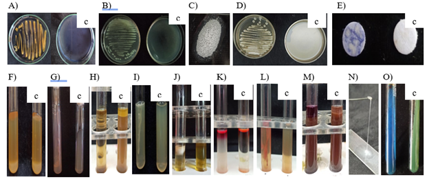 Sterilized VP broth was dispensed into test tubes, and the test bacterium was inoculated into these tubes. They were then incubated for 48 hours at 35°C, alongside an uninoculated control. After the incubation, 12 drop of VP reagent I and two to three drops of VP reagent II were added to each tube. The tubes were gently shaken for 30 seconds without inserting cotton plugs to allow the bacterial cells to be exposed to oxygen. Following proper shaking, the test tubes were left undisturbed for 15 minutes to complete the reaction, and any color change was observed. The development of a pink or purple color was considered a positive reaction.24