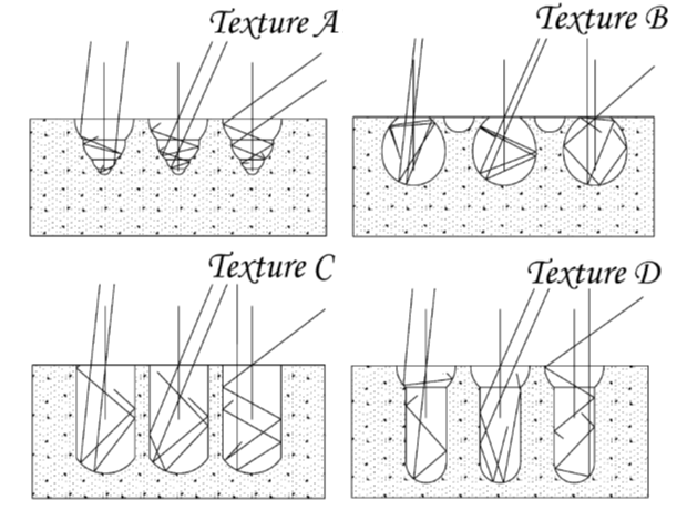 By chemical and electrochemical etching, multidimensional and multilayers macroporous crater-like surface can be easily achieved. The attained texture with different porous morphologies is shown in Figure 1. Meanwhile, Yerokhov et al.,83 explored the relevant mathematical model of the macroporous silicon of the real layer.83