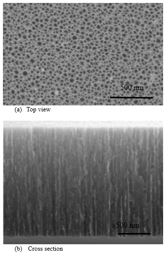 (b) cross section of the porous silicon etched by ozone oxidization.