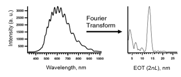 Figure 4 The Fabry-Pérot interference pattern is transformed to single peak corresponding to effective optical thickness by Fourier transform analysis.