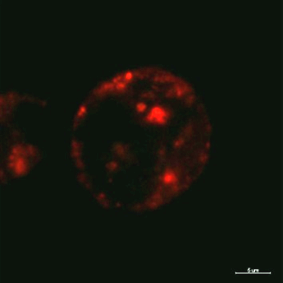 Figure 1 Confocal image of intracellular distribution of Ab-NВ-Chle6 complex in living green monkey kidney cells.