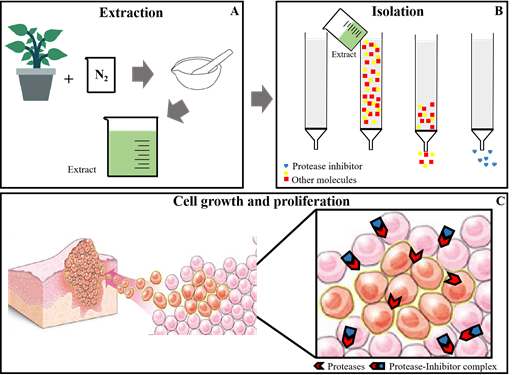 In normal cells, matriptases (serine proteases) are inhibited by hepatocyte growth factor activator inhibitor-1 (HAI-1) and it has been observed that in prostate cancer, there is a decrease in HAI-1 and increased expression of these proteases. Serpin, inhibitors of serine proteases, are used as markers of colorectal, lung and prostate cancers and inhibit tumor growth and lung cancer angiogenesis.13 As can be seen, tumor cells modulate the activity of proteases involved in extracellular proteolysis, MMPs and uPA/uPAR/plasminogen. In addition, the increase in different tumor proteases, results in the degradation of ECM, the growth of tumors (by releasing growth factors), metastases, angiogenesis, among other events. Therefore, PIs can be considered crucial strategies in anti-cancer therapy, and it is necessary to search for new PIs that inhibit proteases involved with cancers.1