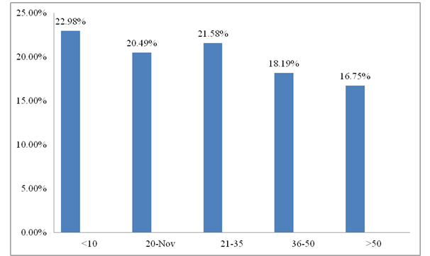 Figure 1 shows the infection was highly distributed in children whose age is less than 10 years old (22.98%) and least infected age group were greater than 50 (16.75%).