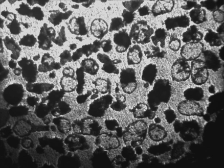 It was possible to obtain an aluminum syntactic foam by tixoinfiltration process, as can be observed by the microscopy of Figure 4, from the analysis of the same it was possible to observe a homogeneous distribution of the balloons in the metallic matrix and their total anchorage, showing no defects in the interface of the ceramic balloon with the matrix according Orbulov et al.10 By analyzing the images using Image J software, using the binarization tool it was possible to determine the average porosity and to calculate the approximate value of the obtained density 45% and 1.8g/cm³.