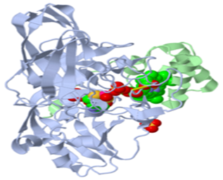 As a homodimer, SOx contains two identical subunits, each with an N-terminal domain and a C-terminal domain. These two domains are connected by ten amino acids forming a loop. The N-terminal domain has a cofactor with three adjacent antiparallel beta sheets and five alpha helices. The C-terminal domain hosts a molybdopterin cofactor surrounded by thirteen beta sheets and three alpha helices. The molybdopterin cofactor has a Mo (VI) center, bonded to a sulfur from cysteine, an ene-dithiolate from pyranopterin and two terminal oxygens. It is at this molybdenum center that the catalytic oxidation of sulfite takes place (Figure 1).