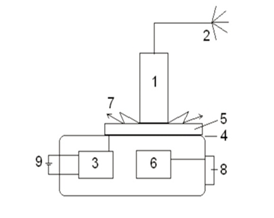 Figure 1 The experimental setup. 1 - metal cylinder; 2 Antenna "Sputnik"; 3 - high-voltage pulse generator; 4 - transparent conductive coating; 5 - transparent quartz electrode; 6 - video converter; 7 - glow; 8 - USB-drive; 9 - Power Supply.