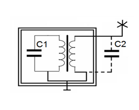Figure 2 Equivalent circuit diagram of the experimental setup, where C1 corresponds to the capacity of the electronic circuit of the Bio-Well device, C2 - the equivalent capacitance of the antenna in the premises.
