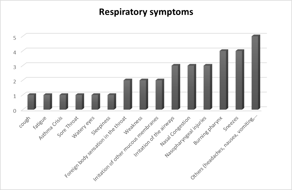 Exposure to inhalation of toxic substances through the use of electrocautery in surgical procedures, may be the cause of respiratory symptoms in surgical instrumentation since the smoke particles generated by this medical equipment are highly irritating due to their chemical composition, it is changing based on multiple variables: type of cauterized tissue, energy applied, device used, duration of the intervention, patient's immune status, treated disease, among others. In vitro studies warn that electrocautery smoke could have a mutagenic effect on the respiratory epithelium. To this must be added that the chemical agents resulting from the pyrolysis of the tissues have an unpleasant odor, which, added to its composition, can potentially cause discomfort and various respiratory symptoms such as pharyngeal burning, cough and irritation.4
