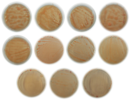 An alfalfa farm, cultivated in a lot of sandy loam soil with little nitrogen availability and without a history of inoculation in more than 40 years, located in the Central Valley of the Province of Catamarca (Argentina), a random sampling of alfalfa plants was carried out. (Medicago sativa) type RR of 60 days of age with spontaneous nodulation. The presence of nodules was observed and from them the isolations were made in YEMA culture medium, incubating at 28 °C14 and their cultural characteristics were determined (Figure 1).
