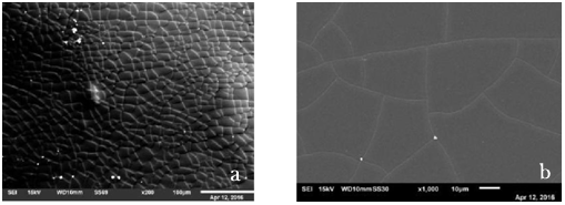Figures 6 Images from the scanning electron microscope sample of chitosan nanocrystalline film (A and B) 1:0.4 in polymer content and concentration of acetic acid, magnification (A) 200 and (B) 1000x. (C) The compositional spectrum of the region where it was made EDS analysis for the image with magnification 200x.