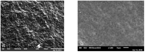 Morphology of the films of chitosan acetate: The technique of scanning electron microscopy was used in order to evaluate the morphology of the surfaces of samples of ethyl Chitosan (Figure 5). are observed in micrographs of the samples of the chitosan acetate films at different concentrations as shown in (Table 1), a smooth, homogeneous and well dispersed, i.e. without formation of agglomerates, but with a texture characteristic (Figures 5A & B). The sample obtained the best results in the morphology study to continue the studies was 1:0.4 related to polymer concentration and acetic acid respectively andthis sample illustrated in the Figure. Figure 5C illustrates the compositional range of the region where EDS analysis was done.