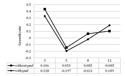 Figure 3 Growth kinetics of Desmococcus olivaceous in the effluent contained in both the photo bioreactors with and without Pulsed Magnetic Field.