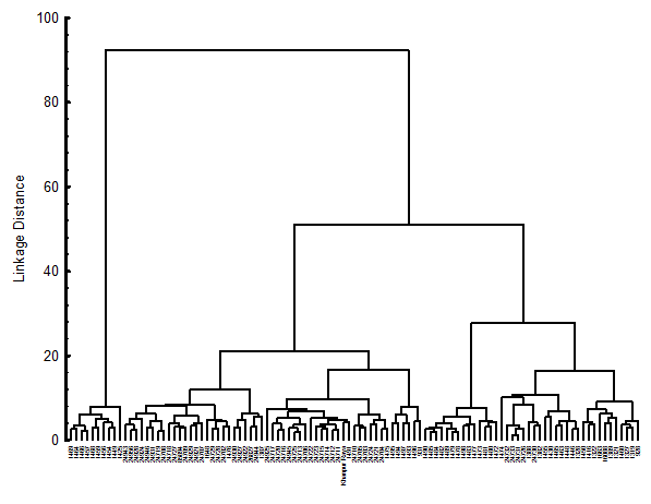 Cluster analysis of germplasm on the basis of all the characters studied divided the germplasm into five major clusters at linkage distance of 20. The diverse germplasm accessions are suitable for the planning of hybridization programs. The dendrogram classified 104 accessions into 5 clusters based on the similarity of morphological characters within the clusters. A number of authors have made use of the cluster analysis technique for the determination of genetic similarity. The construction of dendrograms makes it possible to further visualize and interpret the findings of other studies.7–10