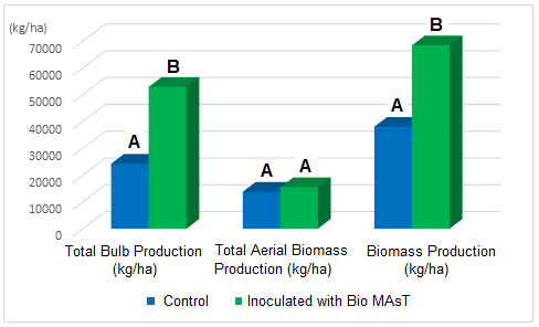 Statistically significant differences were observed between treatments. Onion plants inoculated with the microbial consortium showed higher bulb production throughout the crop cycle (Table 1). Although no statistically significant differences were recorded for the other evaluated variables, increases were observed with the application of microbial consortia (Table 1& Figure 3).