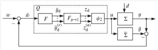 Internal model control: The main idea of Internal Model Control (IMC) is to include the model of the plant in the feedback controller. If we have a ‘perfect’ model with no disturbance, this is nothing more than inverting the system in the feedforward control. In,11 the internal model control was used with the flatness property to control the VGT. The model used is different since it does not consider the EGR path and the main goal of the controller is to regulate the boost pressure only. The overall structure of the IMC with flatness is shown in Figure 5. where ω is the desired boost pressure and z is the (fictitious) flat output. The derivation of the controller is extensively explained in.11