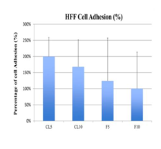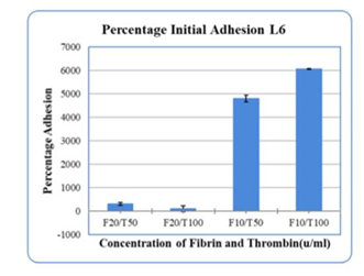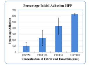 Figure 4(a) HFF cell adhesion in several combinations of Fibrinogen and Thrombin: The best Adhesion was seen in F10/T100.