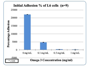 Figure 6(a) L6 cell adhesion in the presence of Omega-3: Higher concentrations of Omega-3 decreased the adhesion of L6 cells.