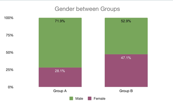 Gender: The gender between the groups were compared using Pearson’s Chi-square test with p value=0.113 which shows no statistical significant association between Gender and Groups.