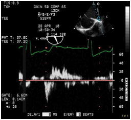 Figure 1d Pulsed wave Doppler of the right superior pulmonary vein demonstrating reversal of the systolic component of the pulmonary venous profile. Consistent with the severe MR.