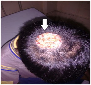 A xeroderma pigmentosum is a rare hereditary autosomal recessive disorder and presence of basal cell carcinoma in children is rare.1 It is mainly characterized by hypersensitivity to sunlight, ocular involvement, and progressive neurological complications.2 These manifestations are due to defect in repair of DNA by the process of nucleotide excision repair (NER) mechanism caused by ultraviolet radiation.2 As a xeroderma pigmentosum induced changes are mainly dermatological, it leads to several challenges in anaesthetic management. Here, we are reporting a child with a diagnosed case of Xeroderma pigmentosum associated with basal cell carcinoma situated over the central part of the scalp posted for a wide excision and a superficial skin grafting under general anaesthesia.