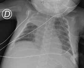 A detailed infectious study was completed, which showed negative microbiological findings (blood culture, control urine culture, cerebrospinal fluid culture, stool culture, conjunctival exudate culture, nasopharyngeal culture, bronchial aspirate culture), with negative serology (syphilis, HIV, EBV, CMV, Herpes simplex 1 and 2, VZV). Imaging tests (chest X-ray (Figure 2), abdominal, transfontanellar, thoracic and cervical ultrasound) revealed no pathological findings.