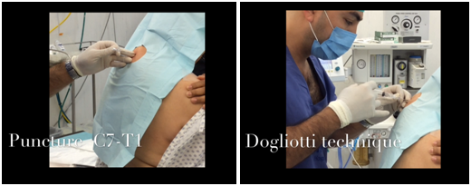 Regional anesthesia has a wide area of choices, especially when selecting the surgical procedure to be performed, either elective or emergency. Applied neck surgeries, upper limbs (brachial plexus in its entirety) and thoracic surgery and anesthesia, analgesia or in combination with general anesthesia, depending on the needs. The cervical epidural technique is a procedure that is not regularly because of ignorance and lack practical training in medical units residence, have left for fear of complications that could be catastrophic in inexperienced hands.1 With the advent of technology tools such as ultrasound neurostimulator and they have moved this technique considered risky compared to previous ones. However, although some studies in the literature with excellent results, complications from this procedure are low are not reported.2,3 And the knowledge of anatomy and physiological changes of this technique to be well recognized even know it is much safer than others, which reports frequent complication because their approaches are: Robert M. Raw makes an exemplary description regarding the technique.