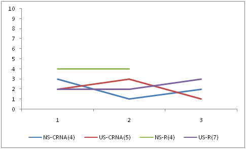 There is no overall direct relation between level of academic background in anesthesiology and improved pain scores but there was observed improvement with the transition from NS to US guided SNB in all groups. Chronic preoperative opioid use by patients remains a challenge and influences the desired clinical outcome of successful SNB. Adequate analgesia is an important parameter for assessment of proficiency in RA techniques and should be included in practitioner procedure logs. Future studies need to address the limitations of this study which include using the VAS continuum instead of the discrete pain score and continuous recording of analgesic outcomes for all RA procedures instead of sporadic periodic observations of performance which can lead to inaccuracies for assessment of RA technical expertise. The authors report no external funding source for this study and also report no declarations of interest.